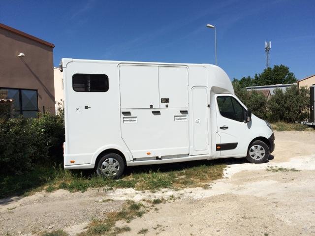 carrosserie NEUVE,type RM04, cabine profonde avec porte laterale d’acces, couchette/coffre,lumiere a led; espace cheval full options, video interieur et exterieur, barre d’attache arr, anneaux d’attacheinterieur et exterieur, bat flanc coulissable,mangeoires, portes selles et portes filets,extracteur d’air, hublots de toits,fenetre de sellerie,2 fenetres a gauche ,1 fenetre a droite, parois de coté et de toit en 35mm, pont assisté par double verin ect…